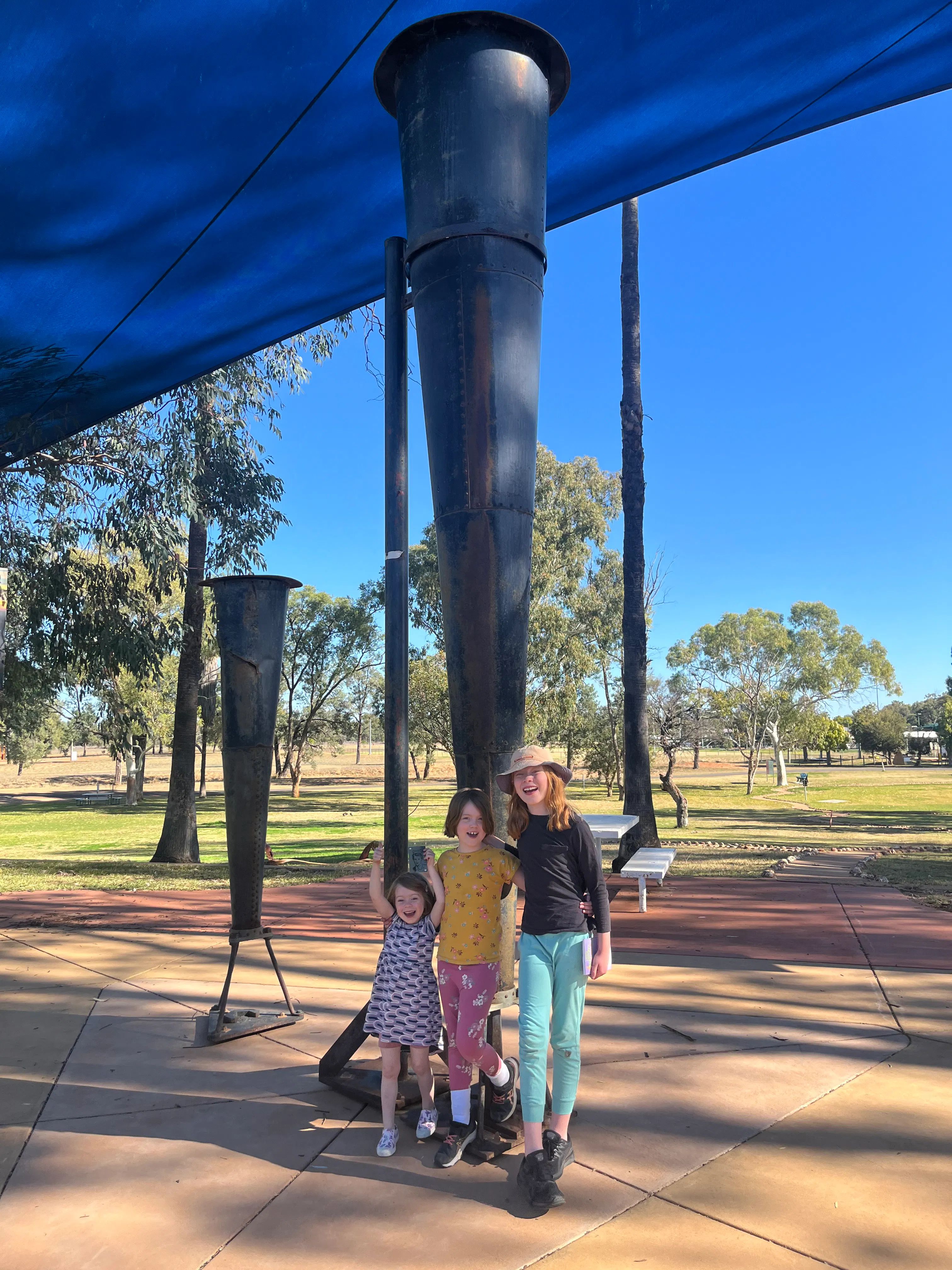 We headed into town for a tasty lunch of pies at the local bakery, after checking the kids book section at the lifeline shop which is going to be a key part of a routine on this trip. Then we headed to the airbase to wander through an exhibition on the secret American air force base during WW2. It really brought to life the effect of the war on the people of this area and the 3,500 USAAF personnel who were stationed here in Charleville between 1942 to 45. We also saw the Vortex Rainmaking Guns in a local park, which were a pretty wild attempt to create rain through explosives in a terrible drought in 1902.
