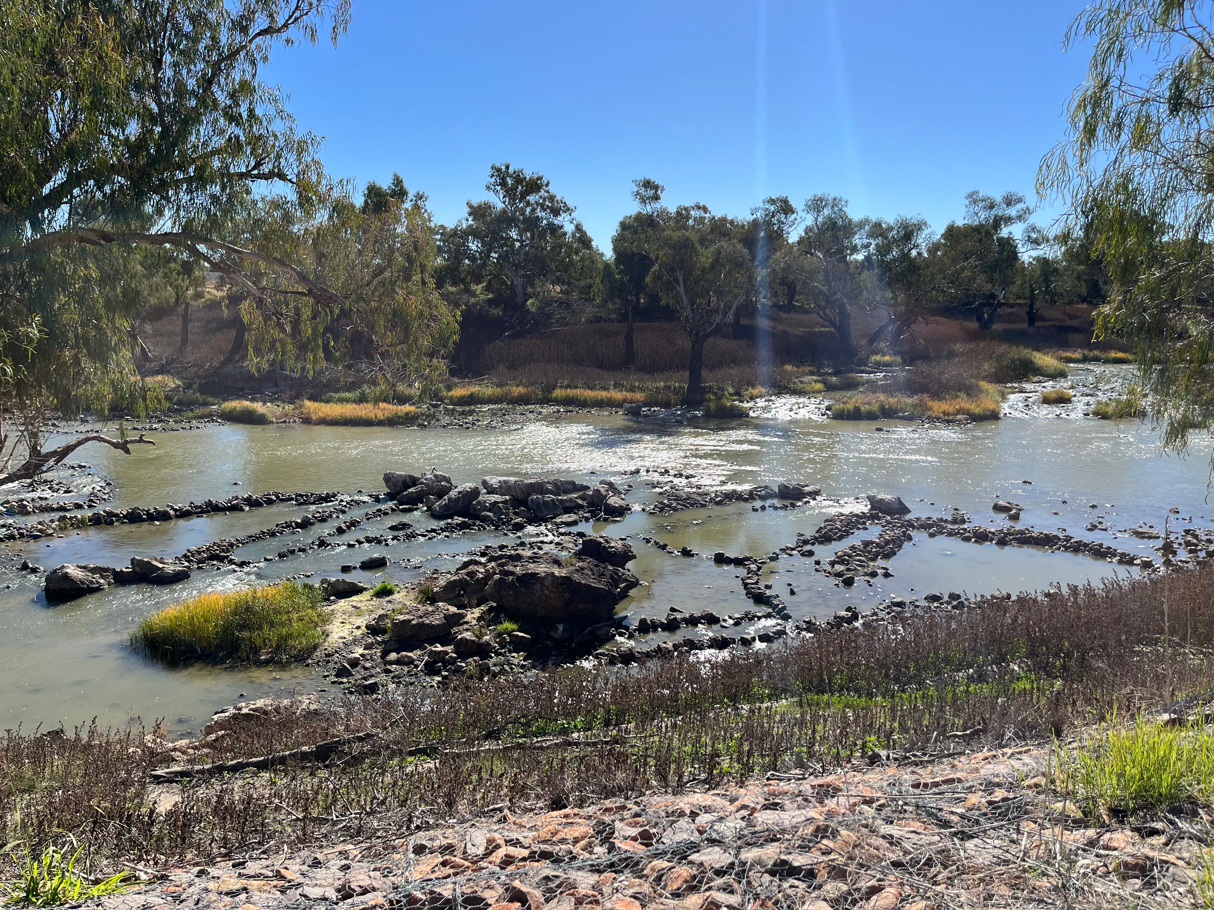 We headed into town and dropped into the Brewarrina Aboriginal Cultural Museum to join a tour of the ancient fish traps. Brad gave us an amazing overview of the history of the area and the importance of the river in bringing communities together. The river was the meeting place of 8 countries of people with 8 different languages, who worked together to build and use the traps over the countless thousands of years. As Brad said, the archaeologists say the traps are anywhere between 20,000 and 150,000 years old, which make them one of the oldest man-made structures in the world. But Aboriginal people don't have the competitive language of 'oldest', they just know that the traps have been used forever to bring people together for nourishment, for health, for ceremony, for community.