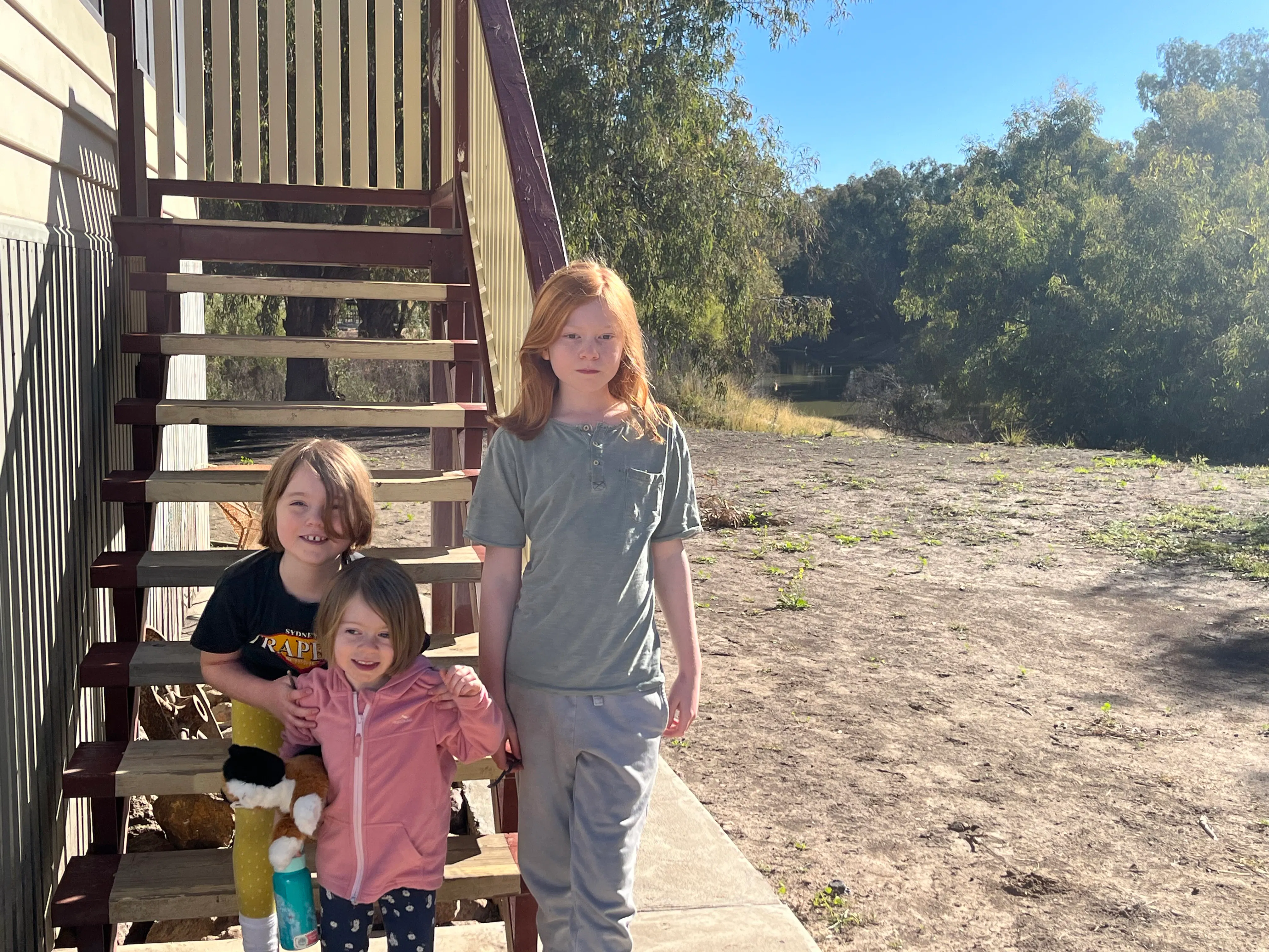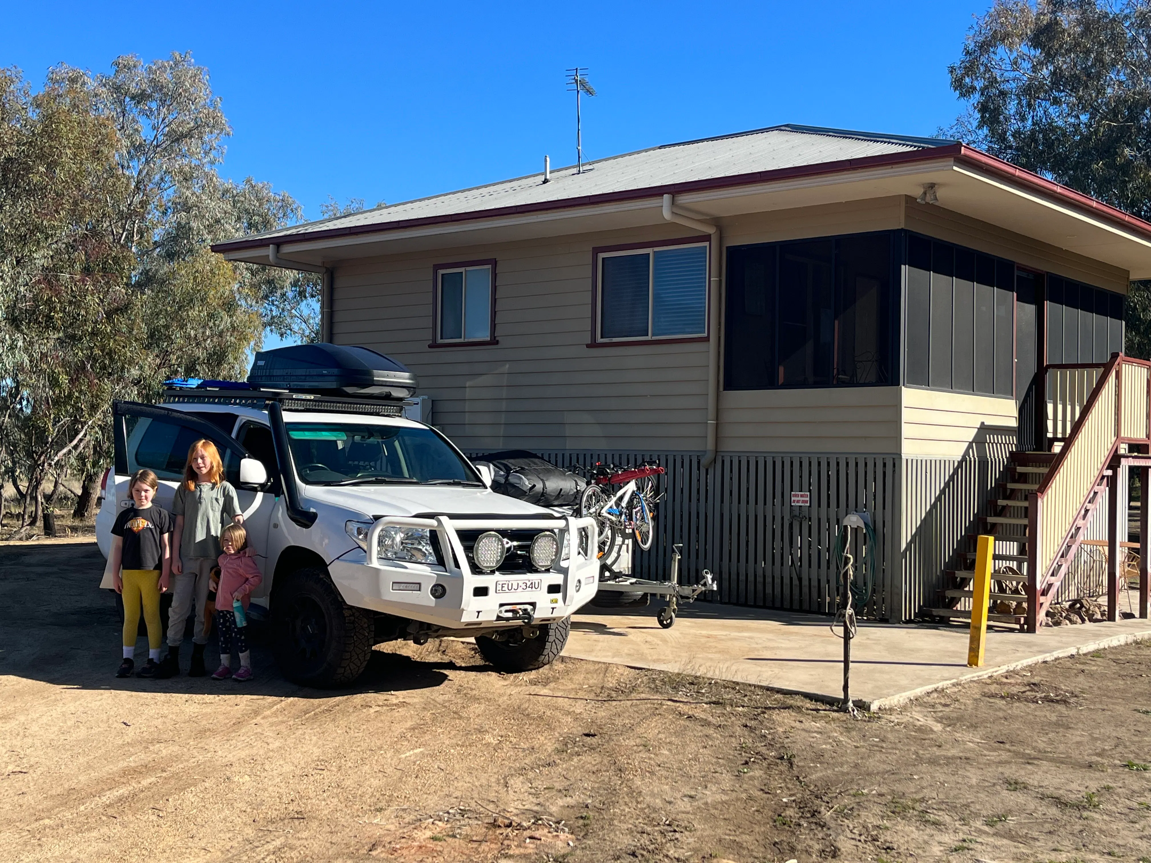 We got into Brewarrina at around 5, and settled into our very lovely cabin on the edge of the Barwon river. After a lovely dinner of burritos from home and a movie in bed, we settled in for our first night all sleeping in the one room, including the first trial of the camping mattresses and sleeping bags by the girls. Thankfully we all slept well!