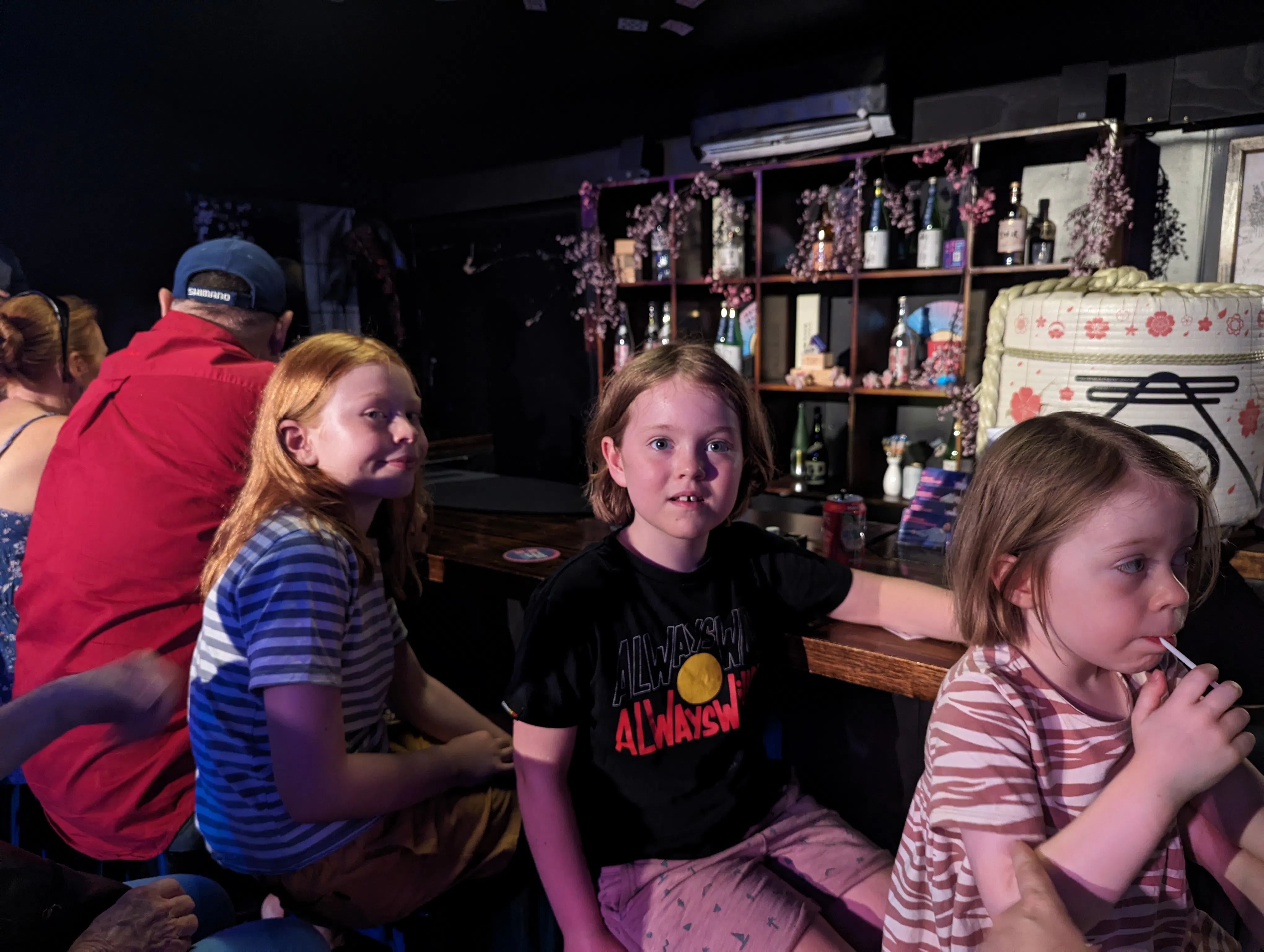 I had organised a bit of a surprise for the kids for Saturday, getting tickets to a magic show that was on as part of the Darwin Festival. The Maho Magic Bar was very cool, with close up magicians from Japan and a ring mistresses from Australia performing some amazing tricks. Toby was keen to suss out how they did the tricks, but was also able to enjoy the spectacle of it all!