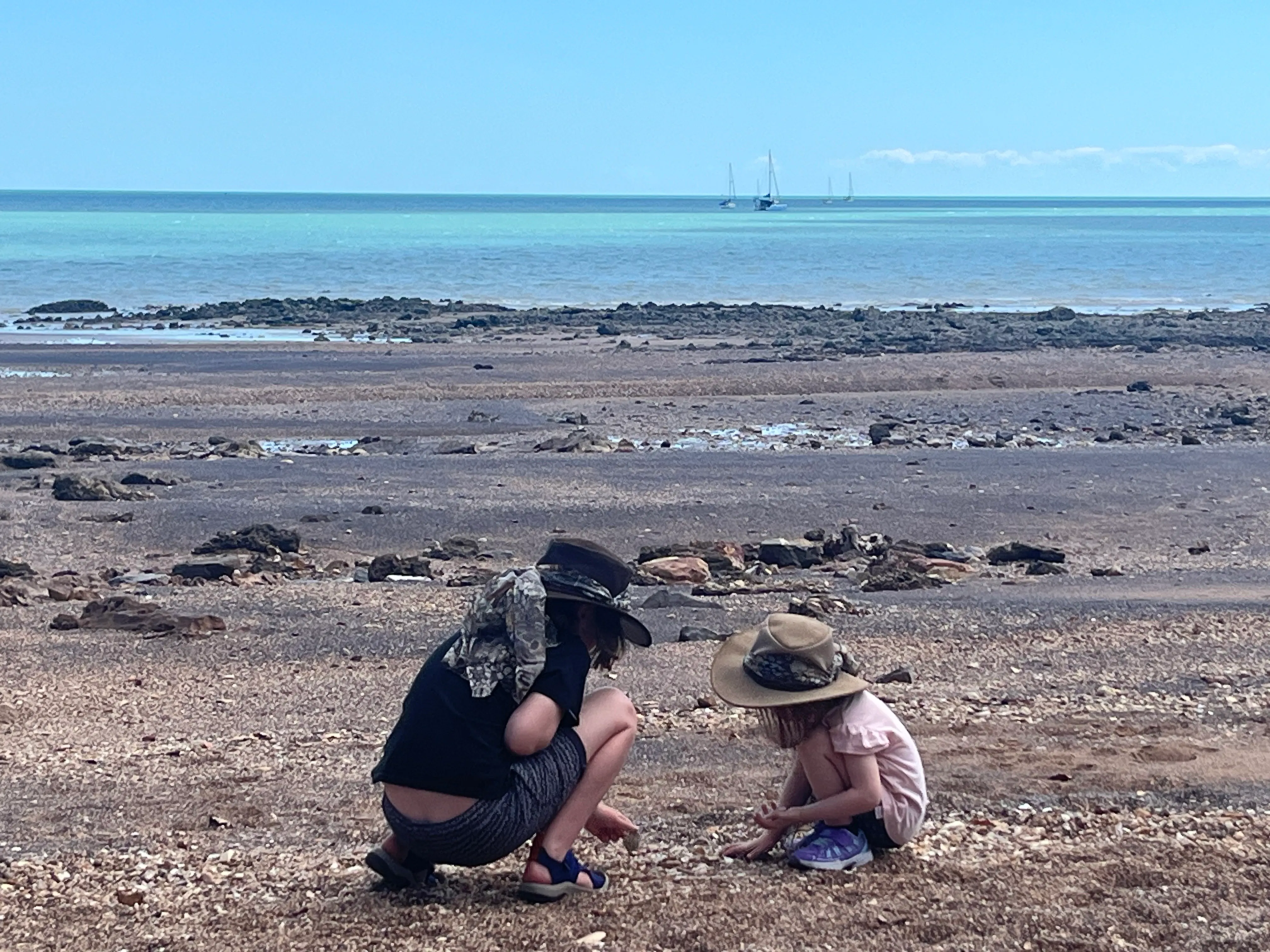 We had lunch at the lovely cafe outside the museum, and then the girls did a bit of fossicking for shells on the beach.