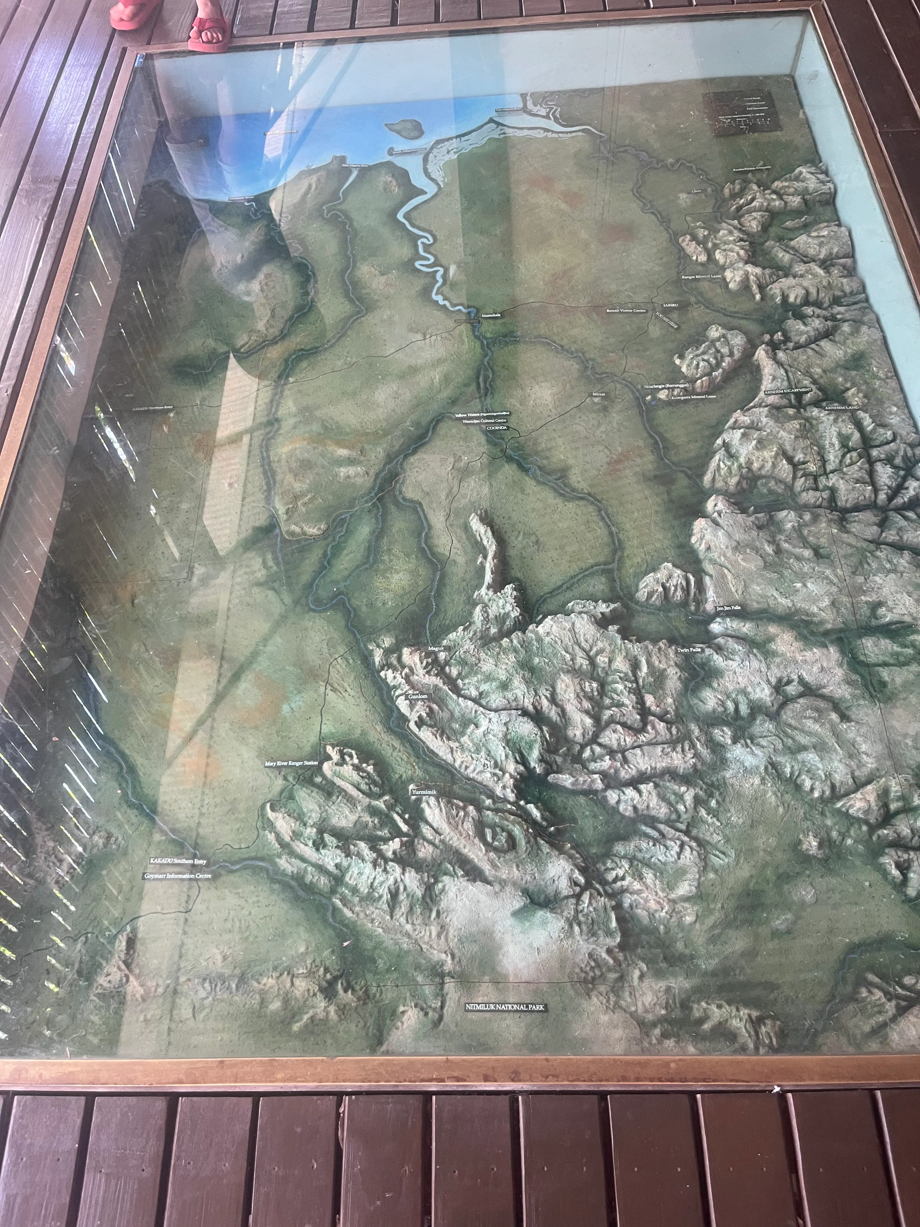 It might be a bit tricky to see, but the raised light grey sections on the right side of the model represents the section of the Arnhem Plateau that is included in the Kakadu National Park.