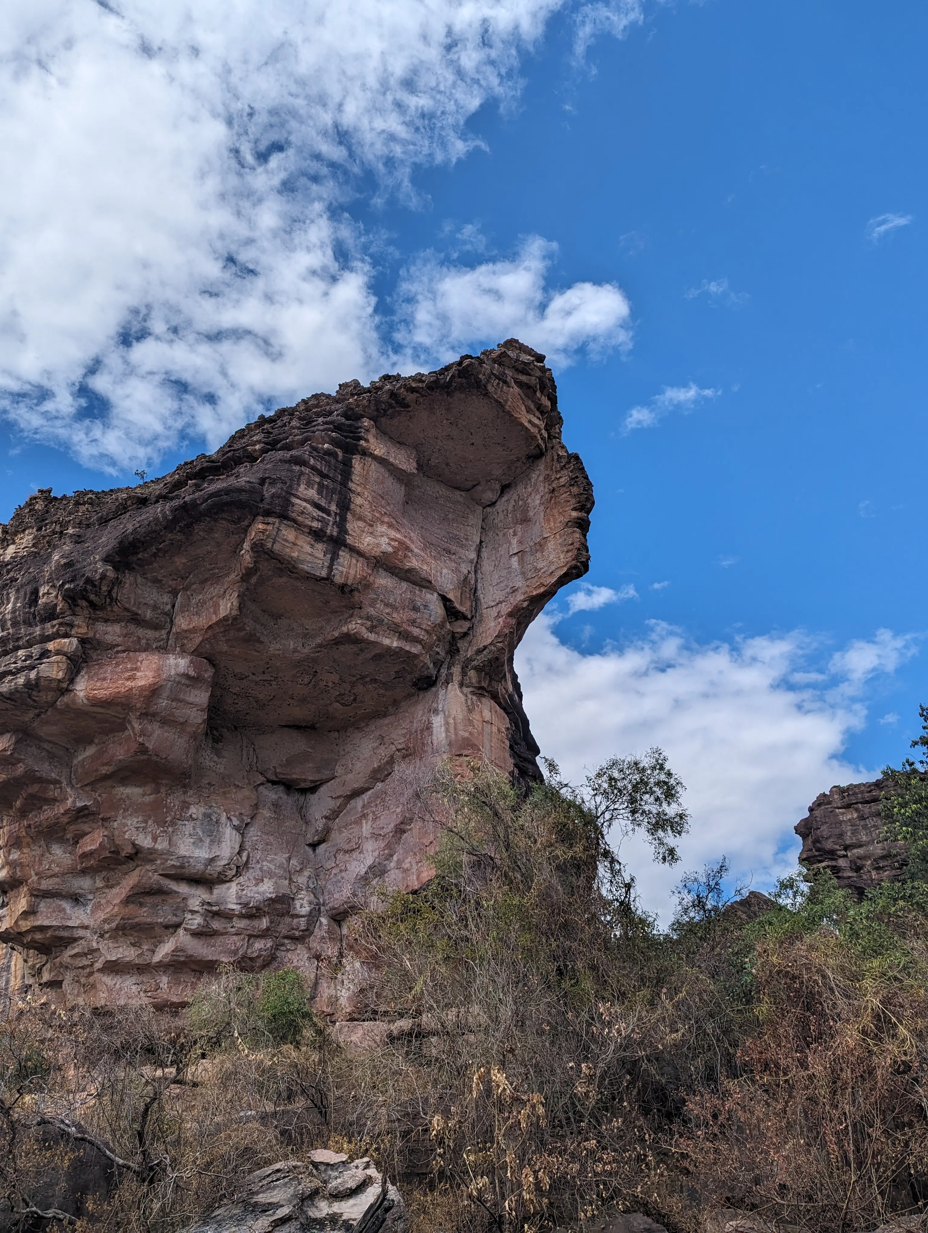 According to the songlines, the rock at a 45 degree angle from the escarpment in the distance is a canoe left behind by a creation spirit who was stranded in when the oceans receded. The spirit then traveled the lands, sharing culture and lore with the local people.