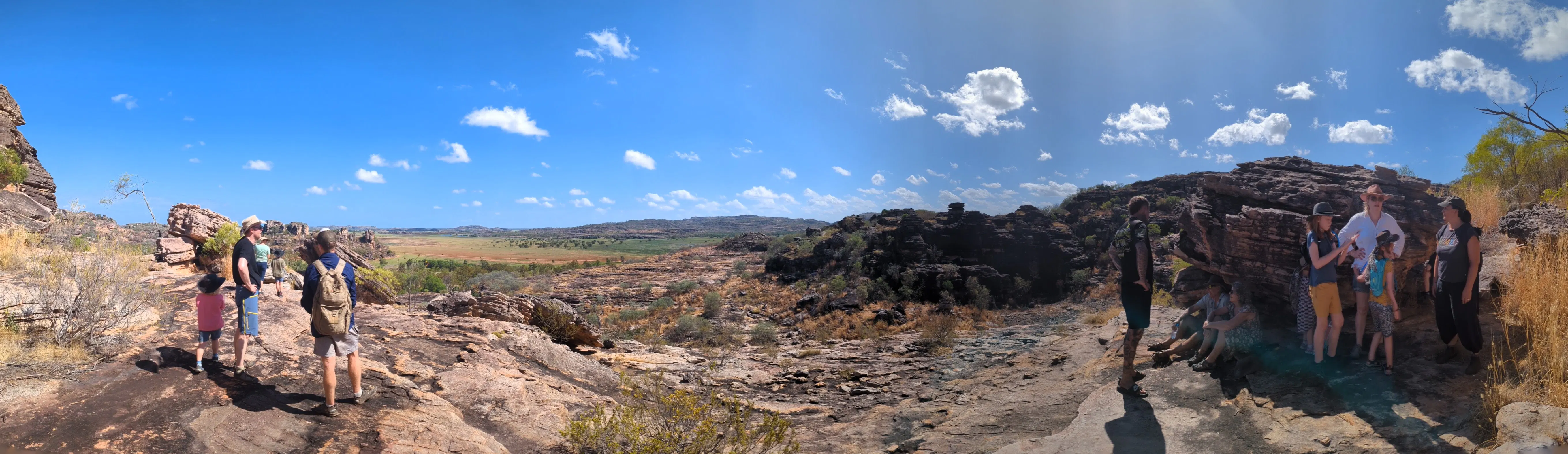 After a family photo on the edge of the escarpment we headed back down and into the truck to make our way to Gunbalanya which is one of the biggest towns in Arnhem Land and home to the Injalak Arts Centre. I bought some lovely screen printed linen that I am hoping Alice will be able to turn into a cushion cover. Toby had a go at playing a didgeridoo and was actually able to make quite a lovely sound with it, probably due to his euphonium playing over the last few years. Given it was quite a small didge and not the straightest it wasn't as expensive as some of the other ones, and Bob made a strong case for getting it for him. So now we have a didgeridoo nestled in the back of the Landcruiser, and I no longer feel feel bad about not letting Toby bring Poppy's trumpet on the trip!
