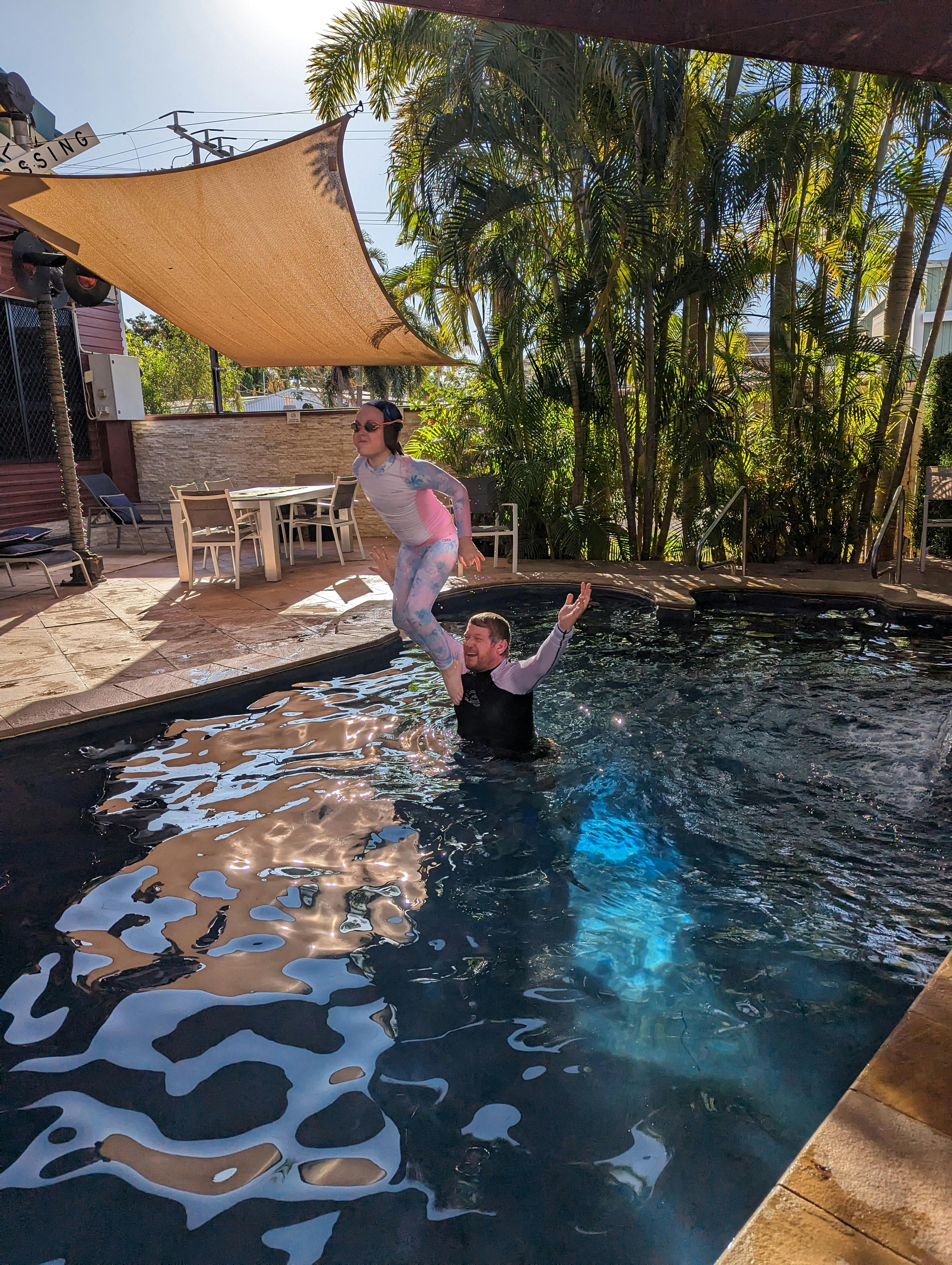 We've had our first deviation from the official itinerary today - I had been booked in to a few days at an arts centre on the Bagala People of the Jawoyn Nation, but unfortunately I found out at the last minute that we needed a permit to enter the closed community that would take 10 days to process. Plus we were hoping to get to organise a tour onto country, but the tour coordinators were too busy having a baby to work around our schedule. So we sent our best wishes to the new arrival and changed our plans to spend 2 nights at the Pine Creek Railway Resort, an hour north of Katherine. It had a family cabin available and a pool on site, so we've booked in the next day and a bit to have a bit of R&R. The girls have already tried out the pool, and the plan for tomorrow is to lounge around in the sun, maybe with a beer or two. And probably do a load of washing 😉
