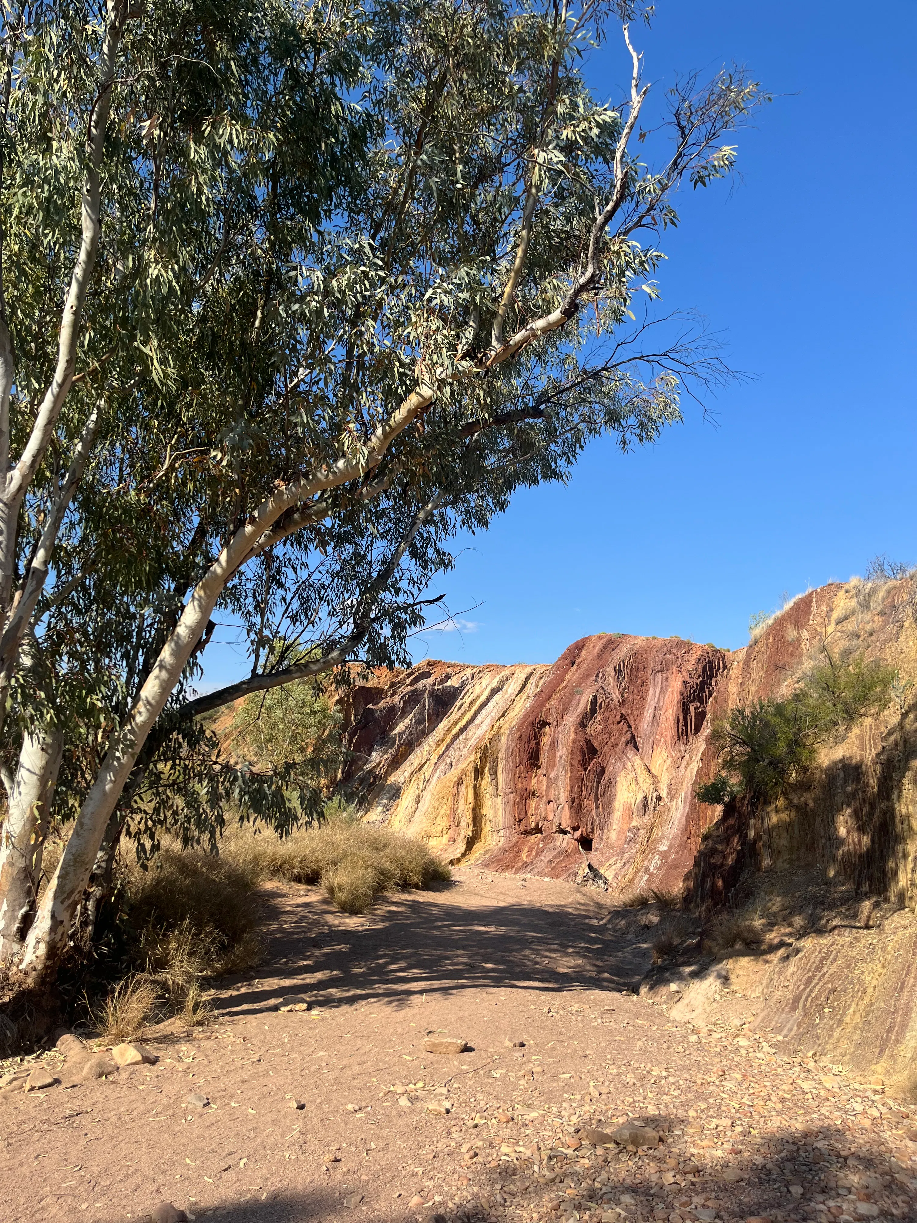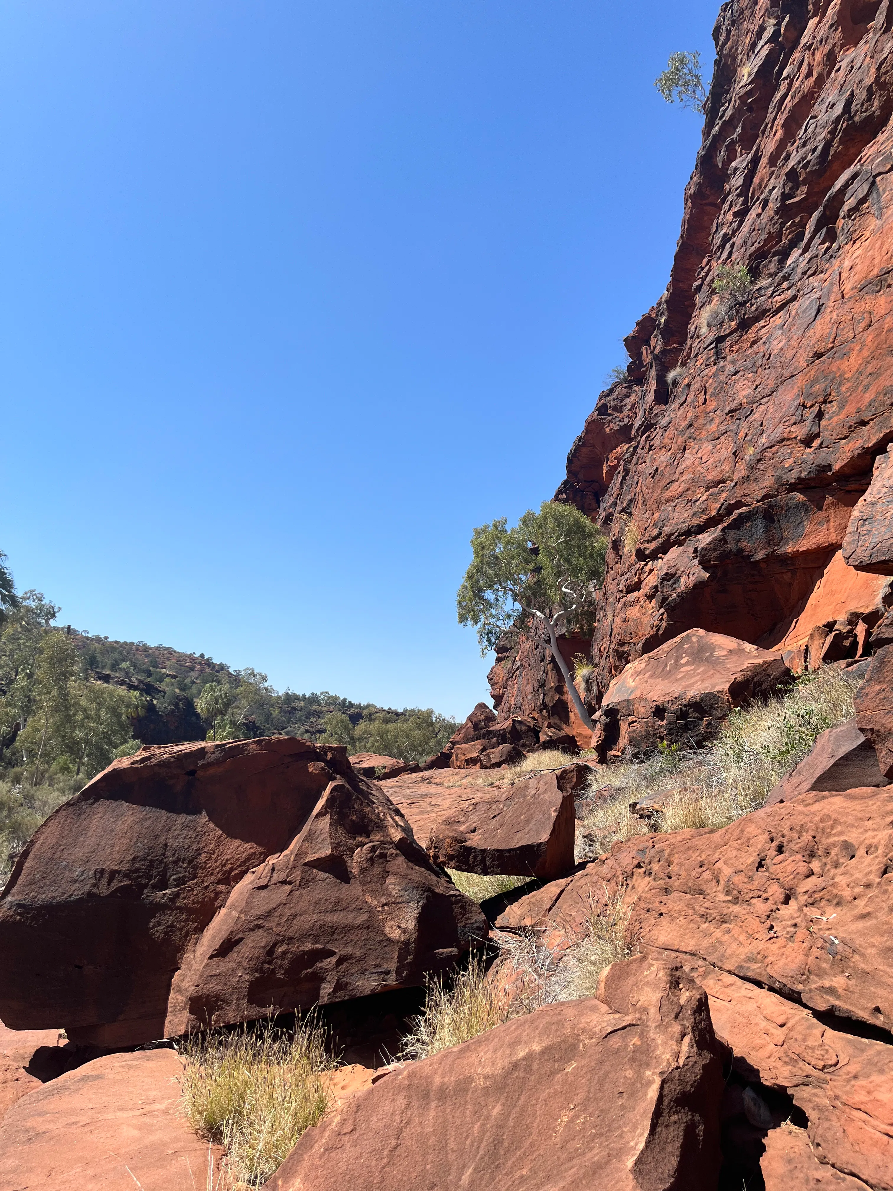 Our first proper stop was Glen Helen Gorge - we had actually planned to stay at the caravan park there in the original itinerary, and still had it as a fall back if the camping endeavour hadn't worked out. Thankfully it didn't come to that as the park had to close due to issue with their water supply 😥. Unfortunately we had messed up our packing for the day and forgot the bag with the swimmers, so we just got to admire the view, and be a bit jealous of the bus load of other tourist who got to cool off after the walk in!