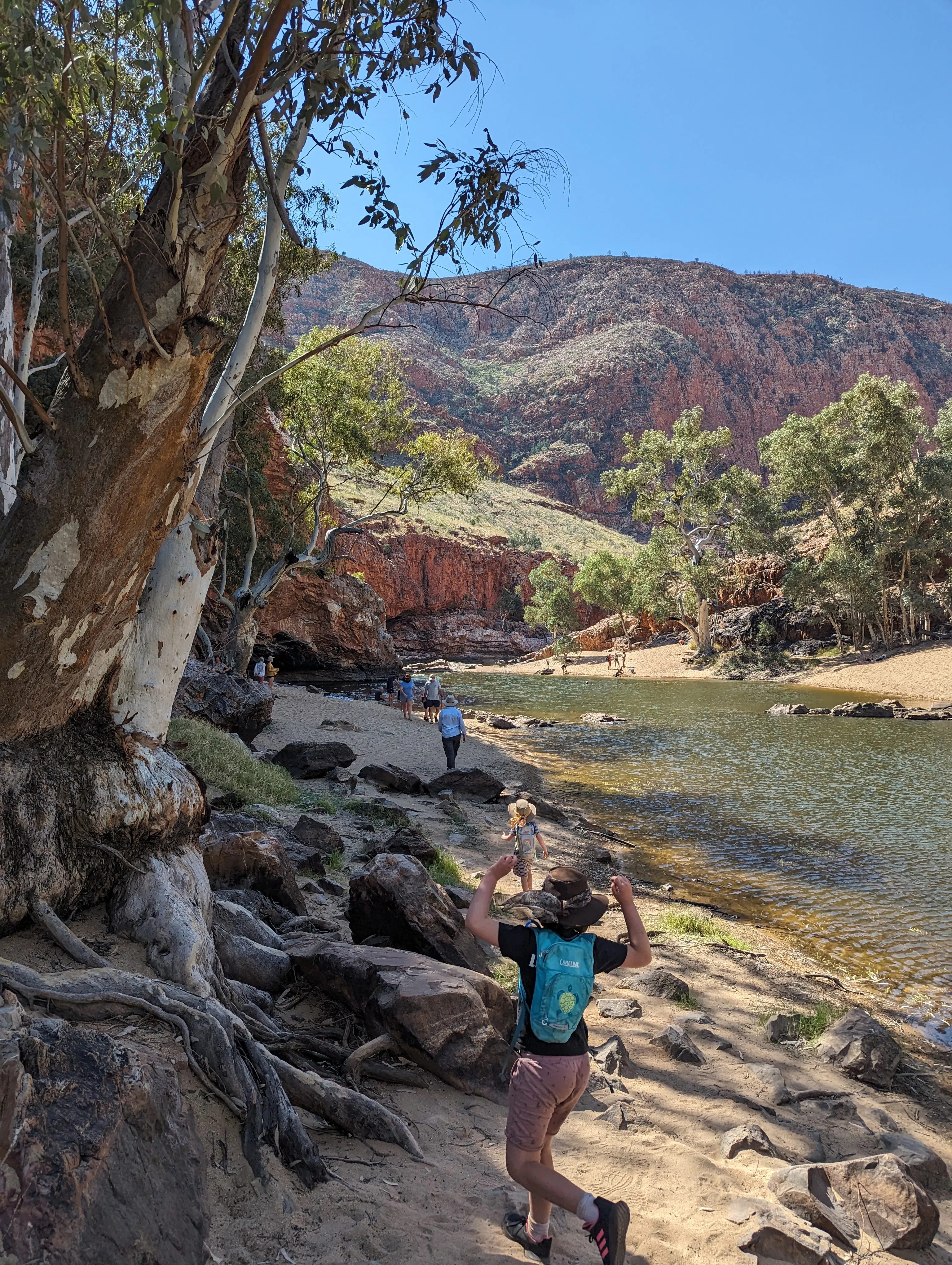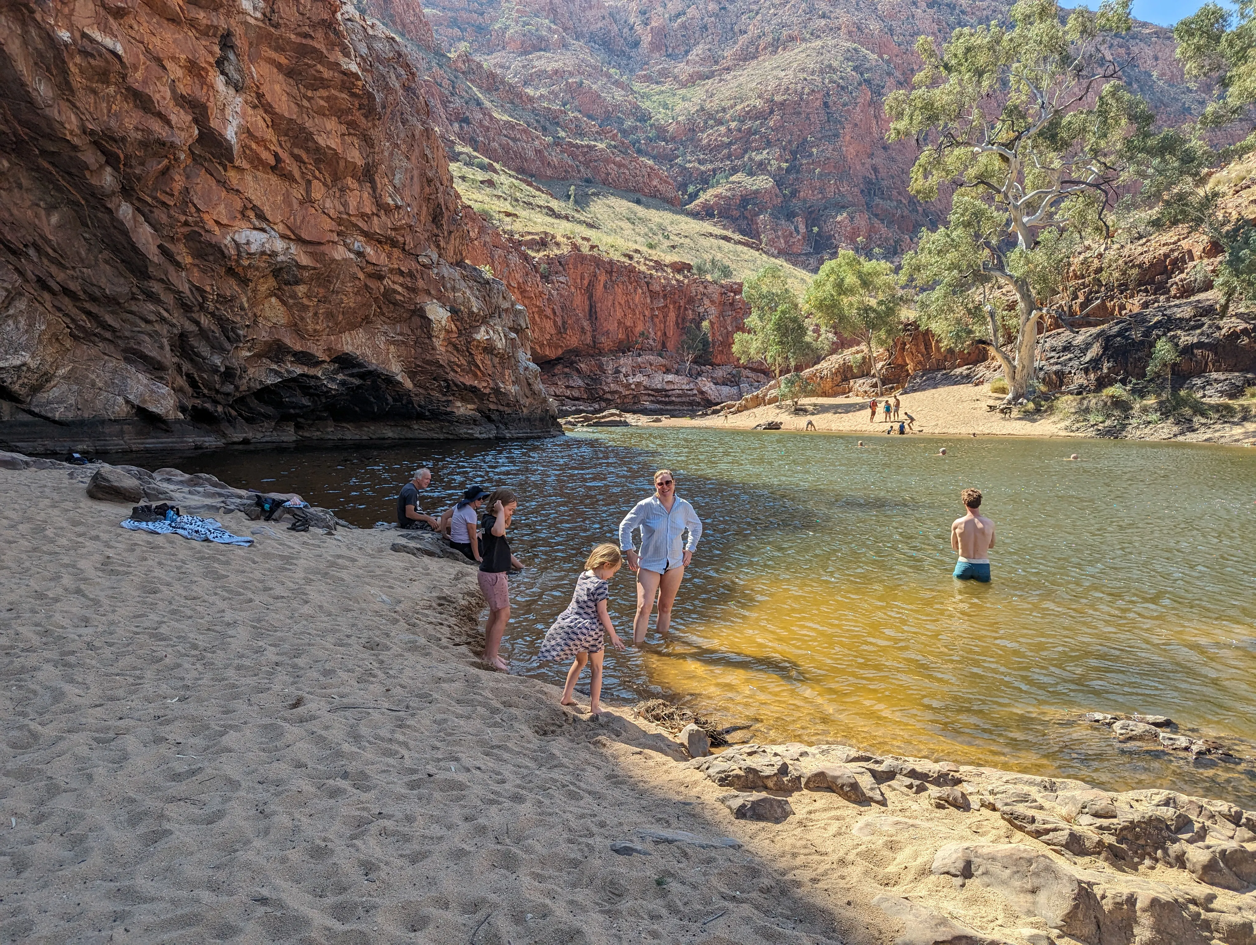This waterhole is just so glorious - golden sand, majestic ghost gums, towering cliffs overhead.
