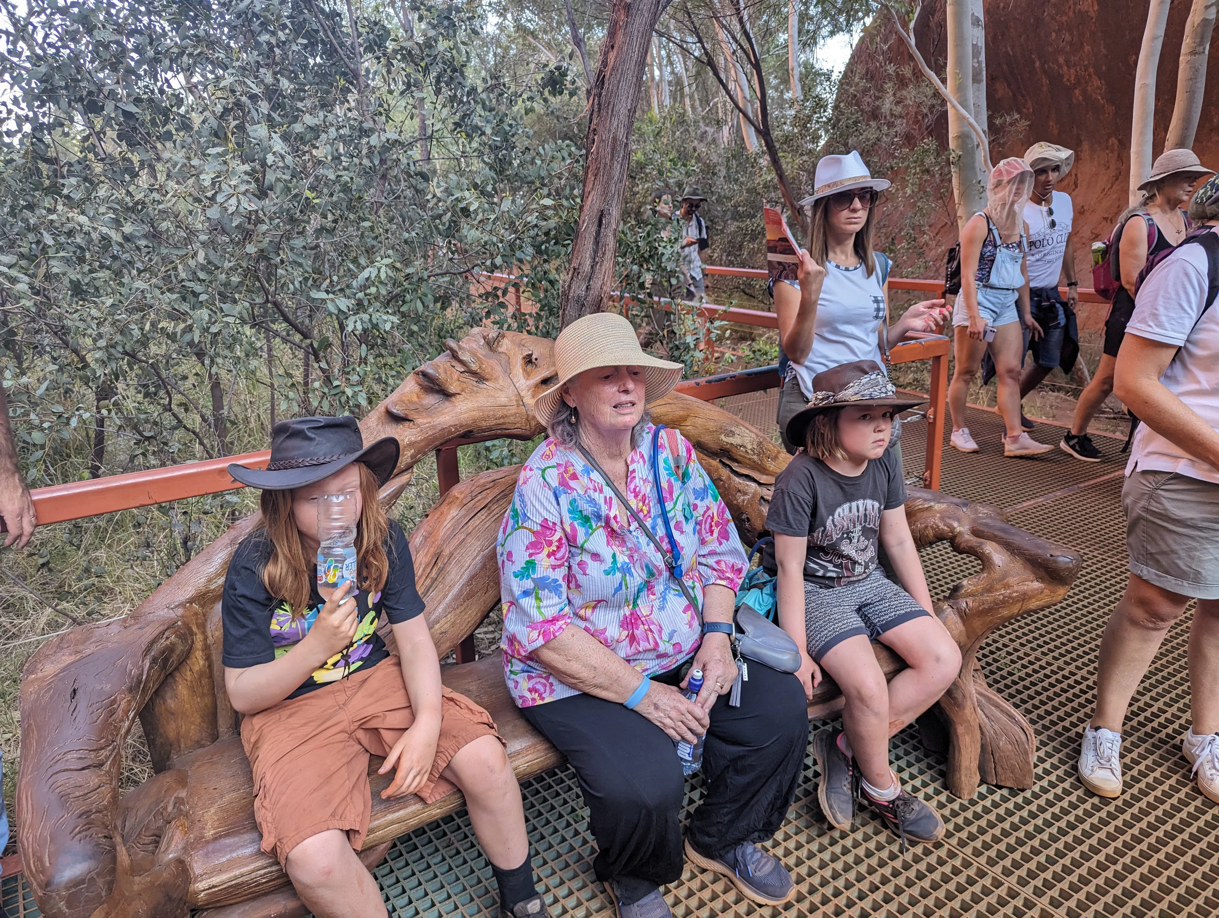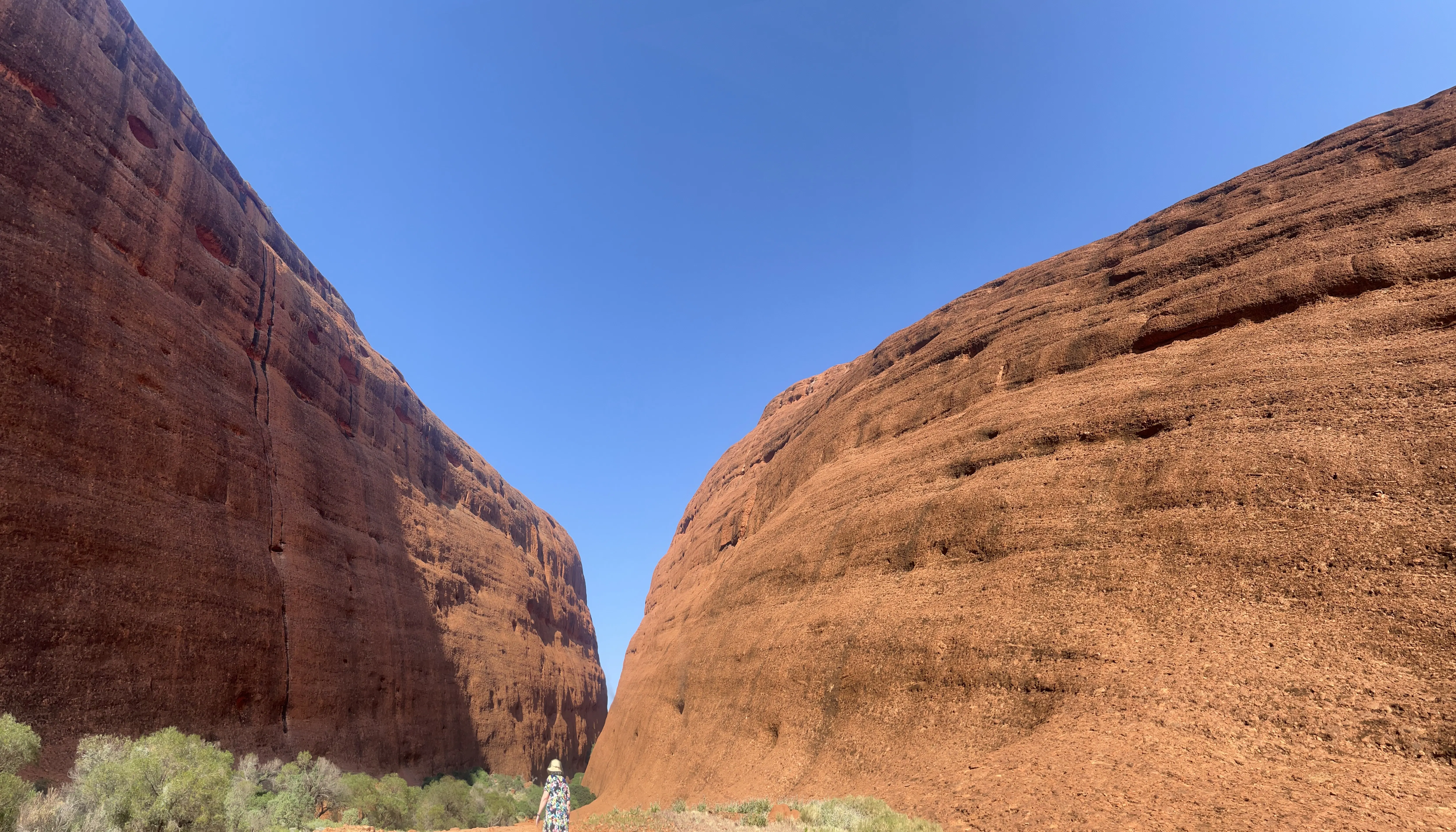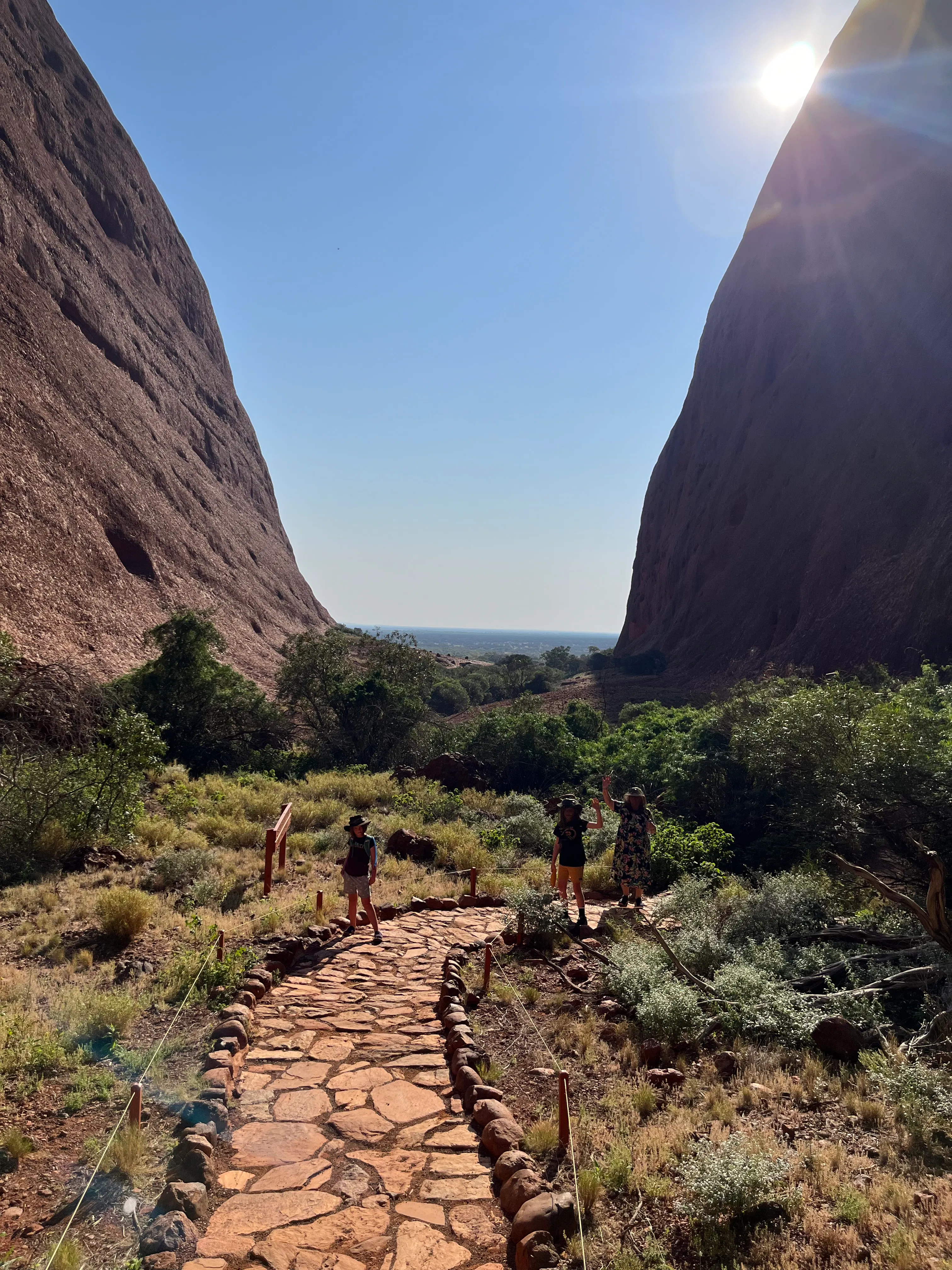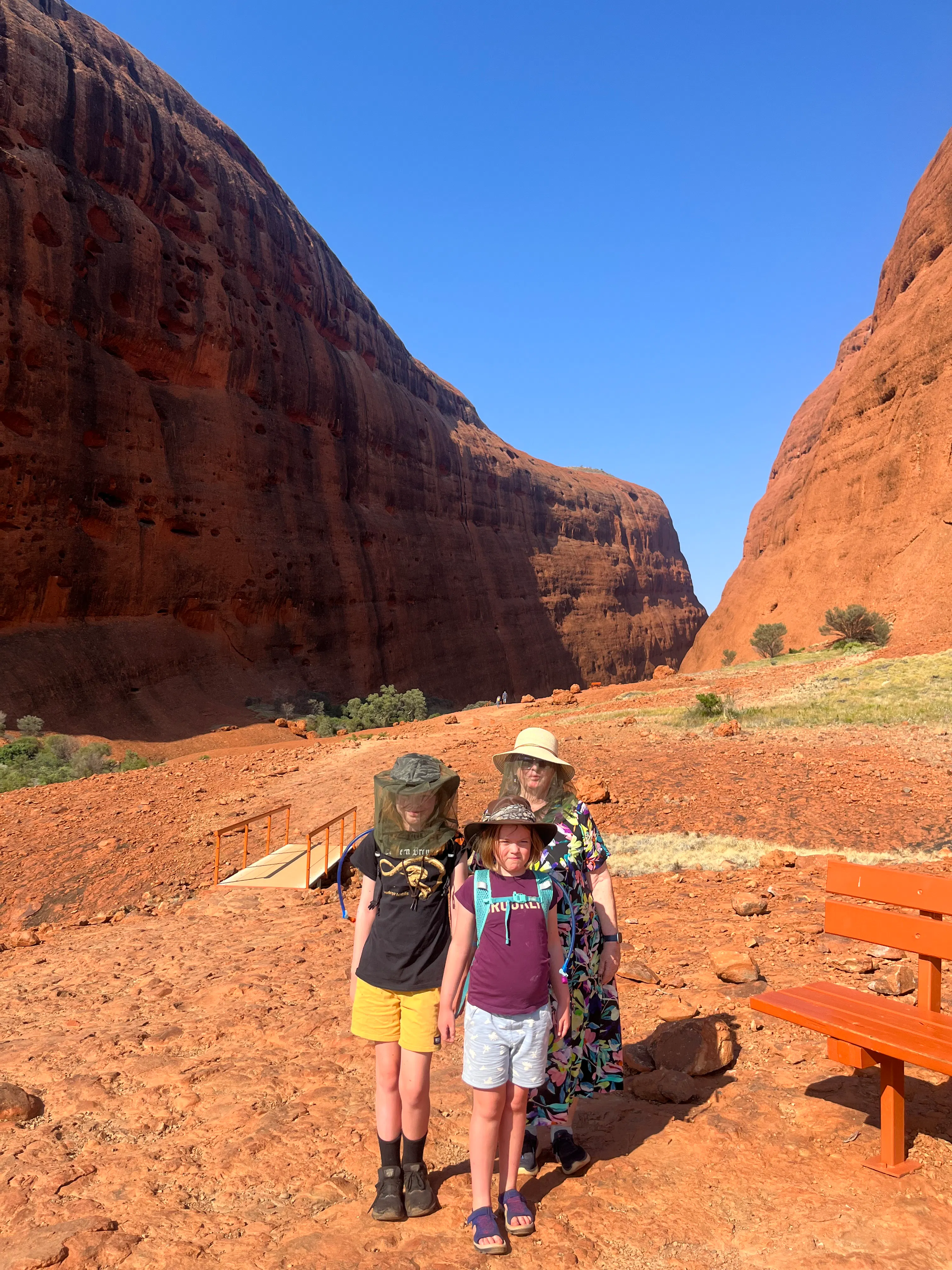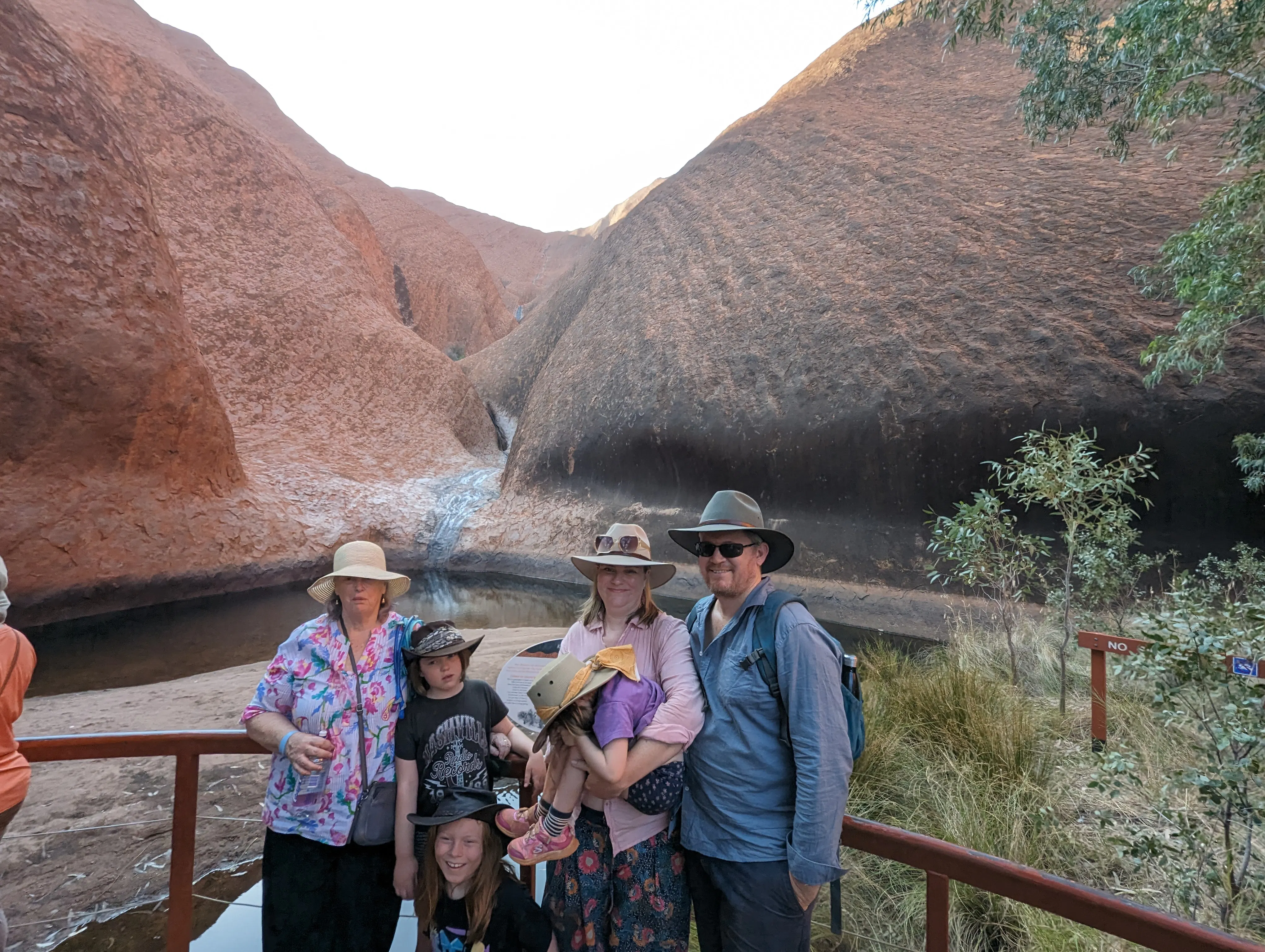 The next morning Rhonda and the kids joined us for a fancy buffet breakfast which was very tasty. In the afternoon Rhonda and I and the big kids went back to Kata Tjuta to do the Walpa Gorge walk - it was pretty hot, not much shade and more hilly than we expected, but Rhonda's new knee held up a treat so that was great! Photos of this part of Kata Tjuta are allowed as long as they included both sides of the gorge.