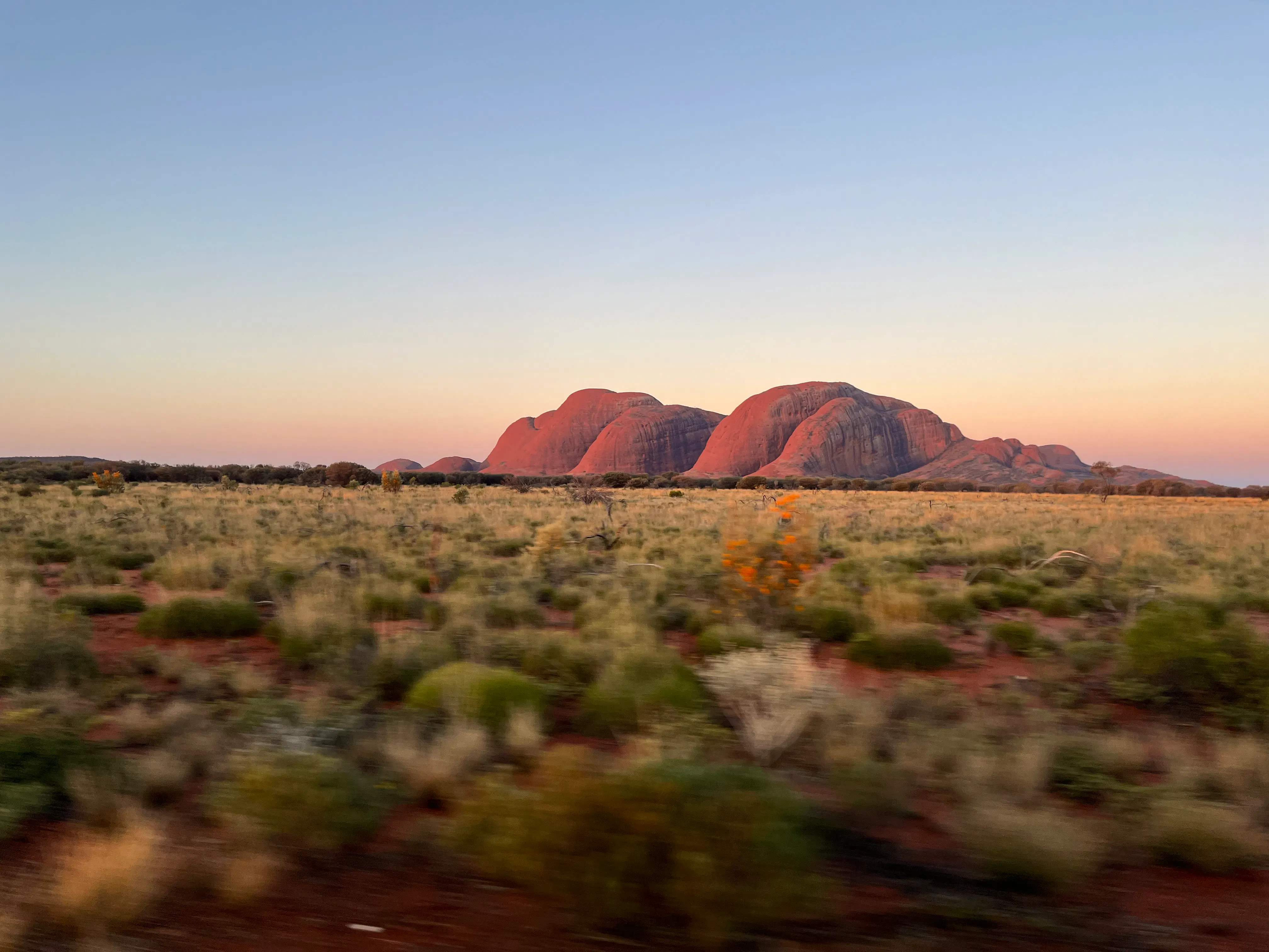 The south eastern side of Kata Tjuta at sunset, which just looks like a painting!