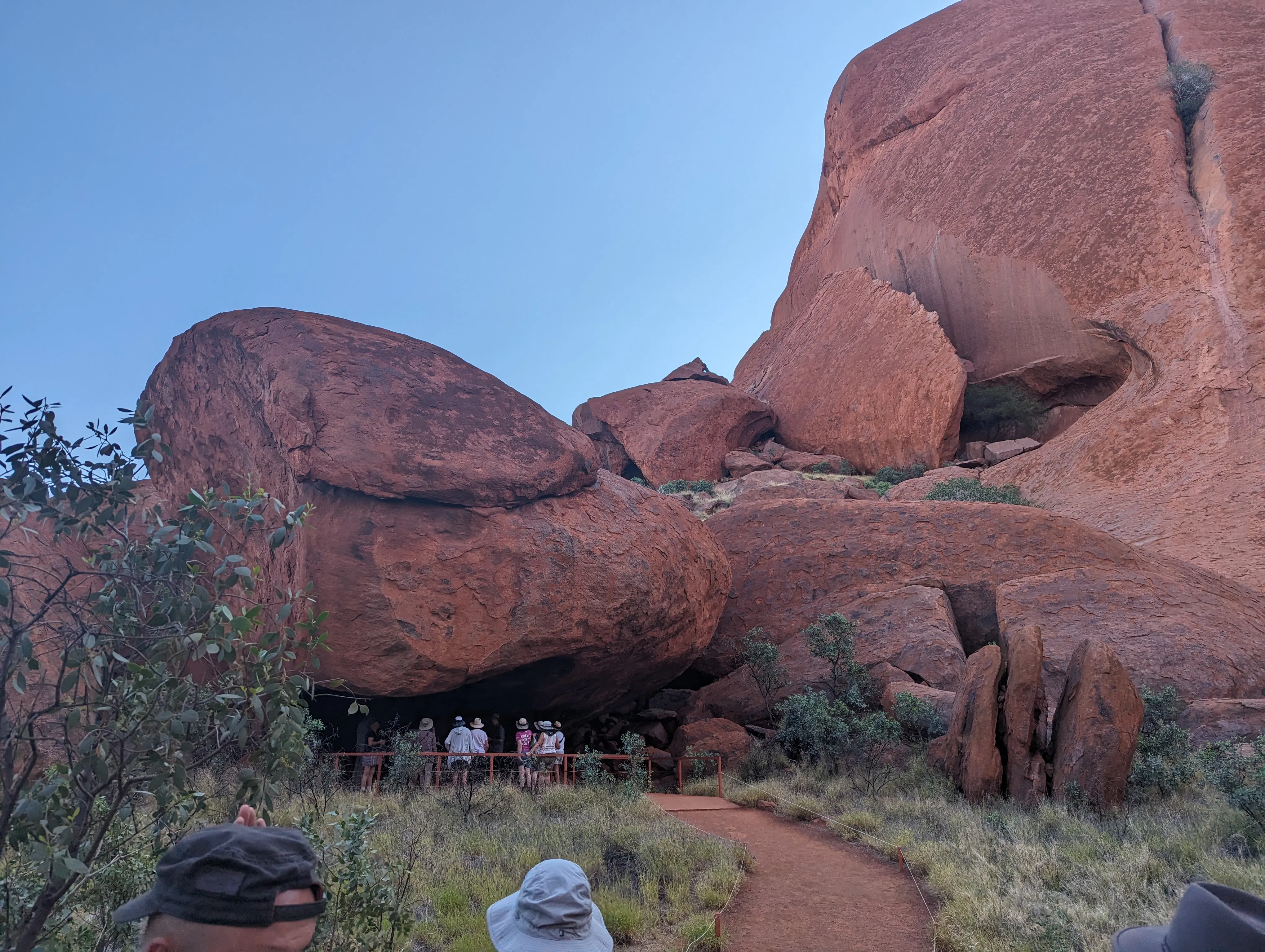 Our next stop was around other side of the rock on the Mala Walk, which we had missed on our hurried end to our bike ride so I was very pleased to be able to check it out. On the way Mon told us the Tjkurpa of the Mala people, the Tjukuritja for which is visible on the northern side of the rock. This is a sacred men's site, so no photos are allowed. It was also the site of the original camping ground and airstrip in the early days of white tourism at Uluru, which was particularly egregious given the cultural importance of this site.