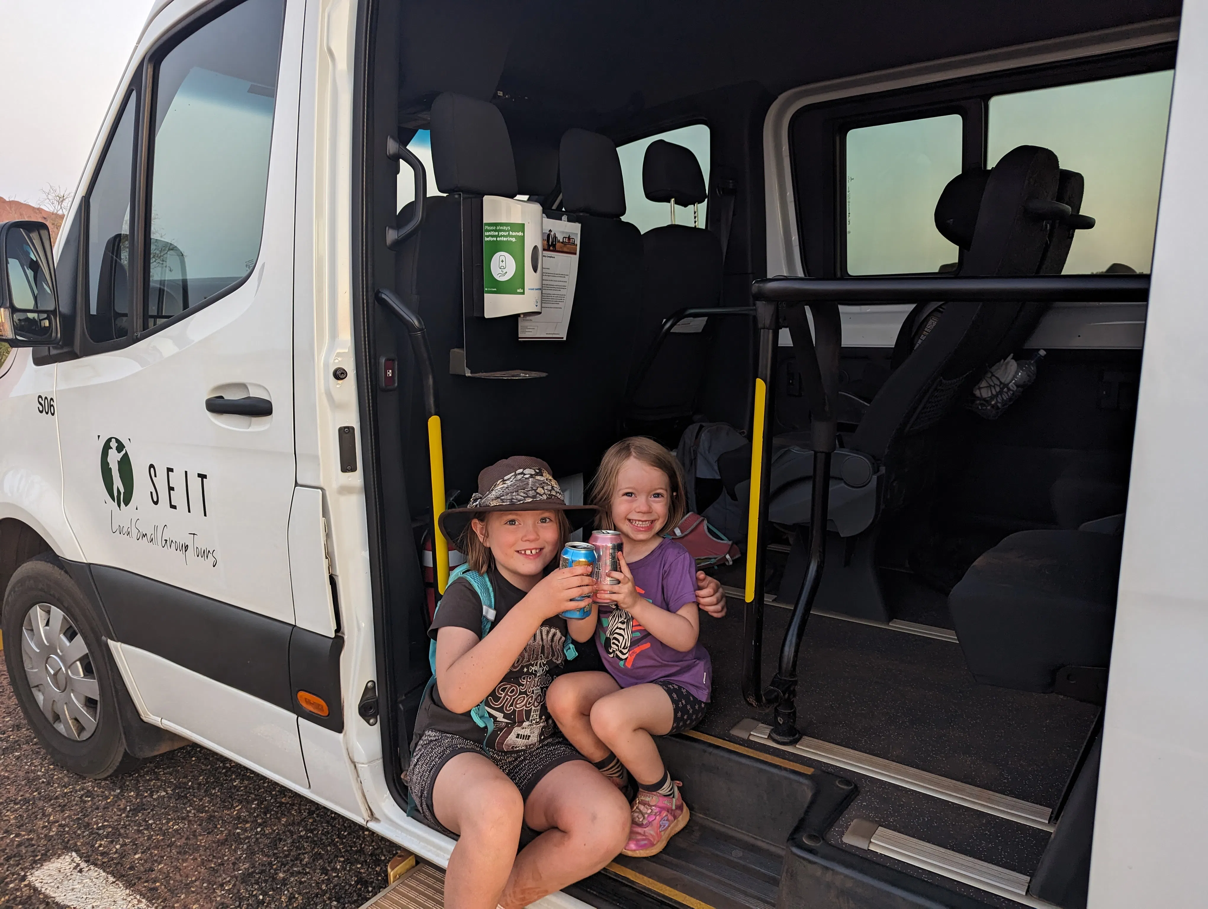 We stopped to see another sunset, and Mon set up a lovely spread of damper with oil, vinegar and local dukkah using native ingredients, with some lovely drinks. It was just delightful - I went back for more bucks fizz, Rhonda and her new friend Marilyn went straight champagne, and the kids smuggled some soft drinks...
